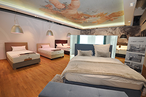 Neben diesen beiden Studios verfügt die Abteilung über zahlreiche Kojen, in denen Schlafräume inszeniert werden, die dem Kunden eine gute Orientierung für sein eigenes Zuhause bieten – inklusive dekorierter Betten, Beimöbel, Lampen, Kronleuchter, Teppiche und so weiter. Matratzen werden in einem ebenfalls eigenständigen Bereich gezeigt (Aera/Femira), die Verkäufer sind hier für die Beratung entsprechend geschult.